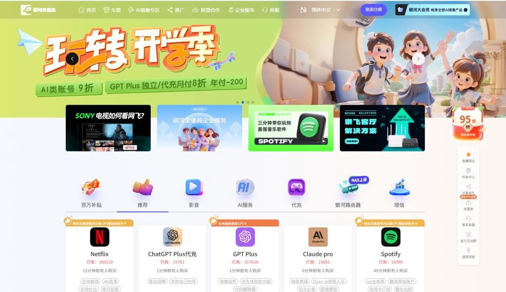银河录像局创立于2019年,是一家专注于流媒体与AI工具合租的综合性大平台。该平台致力于为用户提供Netflix、Disney+、HBO、Apple TV+、Prime Video、Paramount+、Spotify、YouTube Premium等流媒体合租服务,以及Luma、ChatGPT Plus、Claude Pro、Midjourney、Grok等AI工具的合租和代充值服务。目前银河录像局已通过工信部备案,备案号为浙ICP备2022036459号,具备正规ICP经营许可证,许可证号浙B2-20230847,所经营各项业务运营均合法合规,技术实力和服务能力在行业内都处于领先地位,新老用户都可以放心选择和使用。
